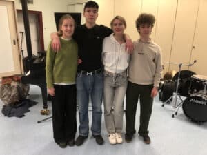 Master­class Ensem­bles GBJA, Dort­mund (v.l.n.r. Mag­da­le­na Düser, Johan­nes Otto, Daria Pere­ver­zo­va, Flo­ri­an Gasse)
