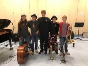 Jazz Fresh­men Quin­tet, Köln (v.l.n.r. Yuki­chi­yo Gwen­d­olyn Yoko­ta, Soji Tri­stan Yoko­ta, Mattheo Höl­ker, Amon Deeb, Joshua Badde)